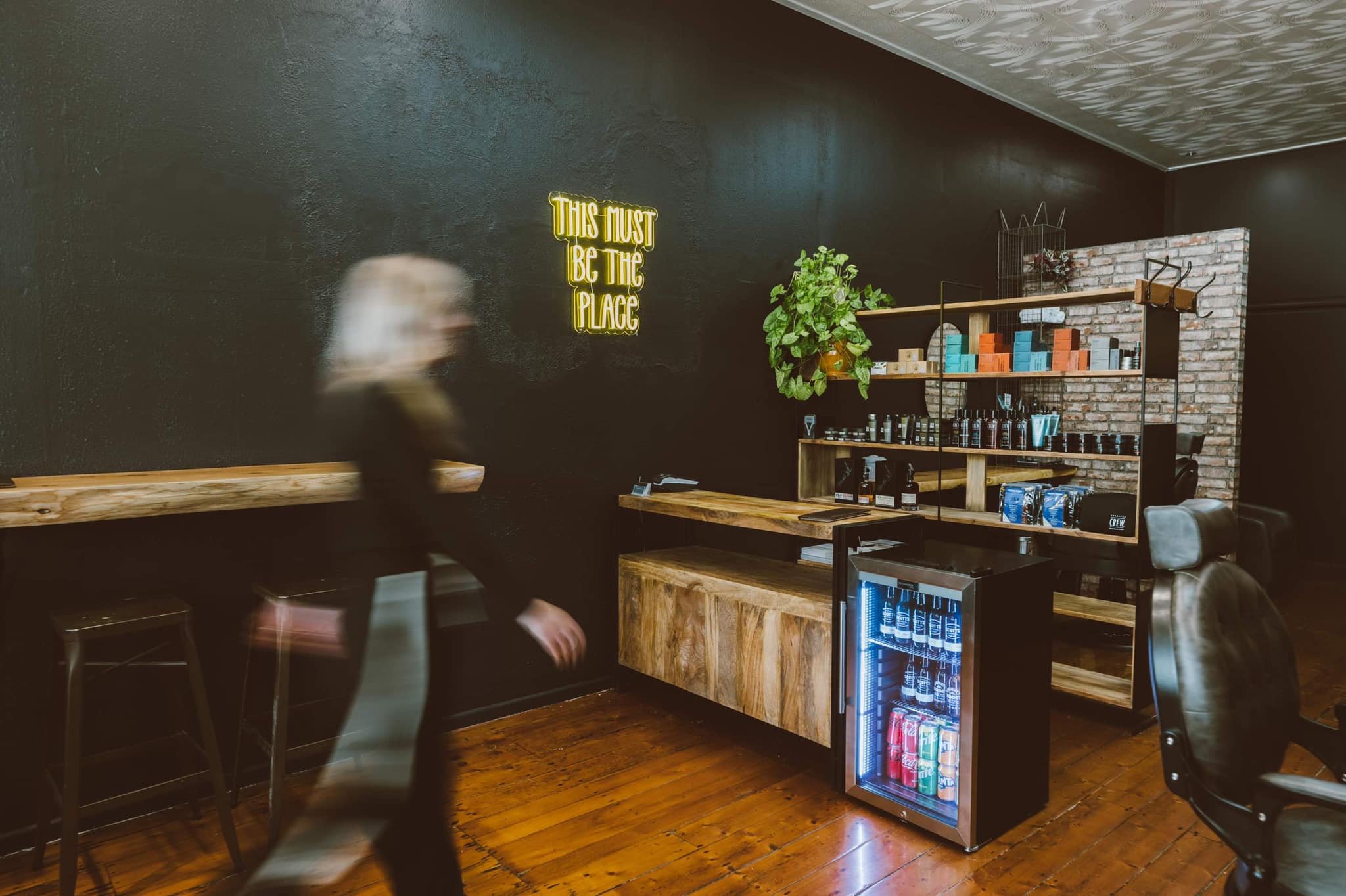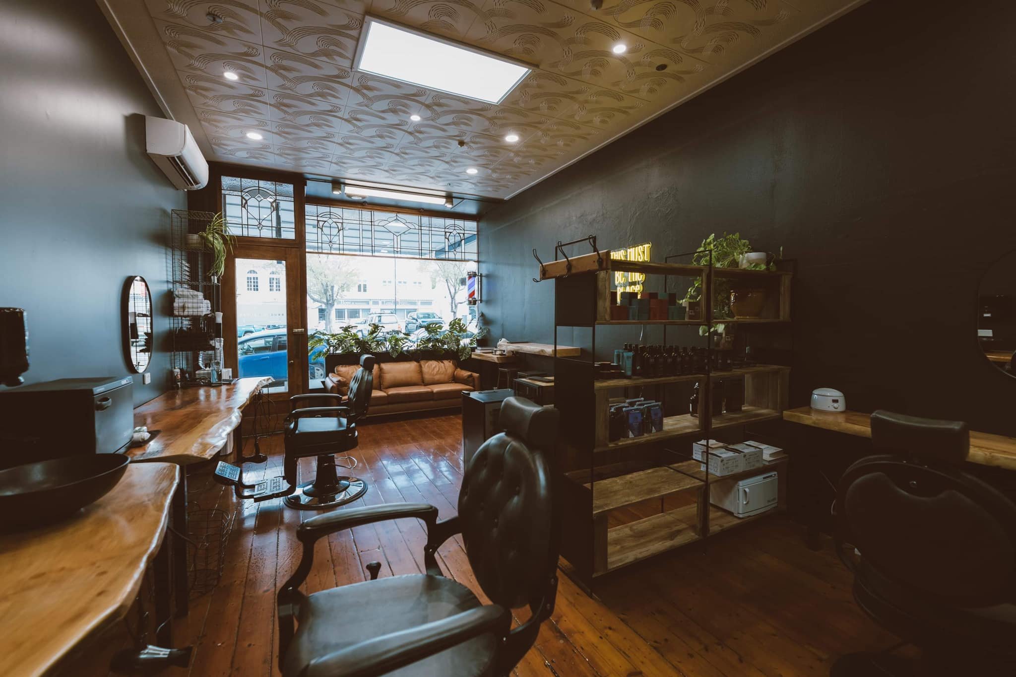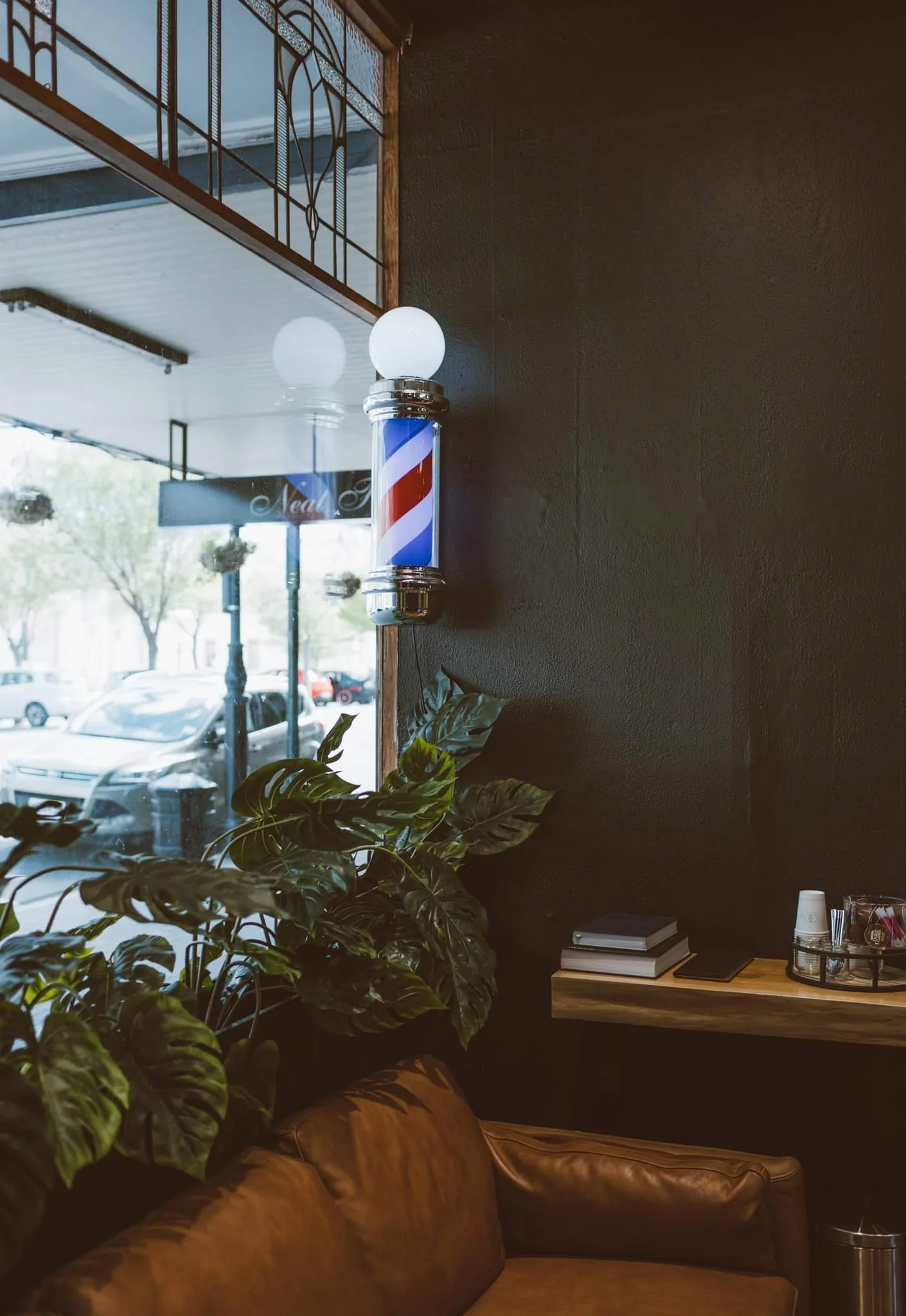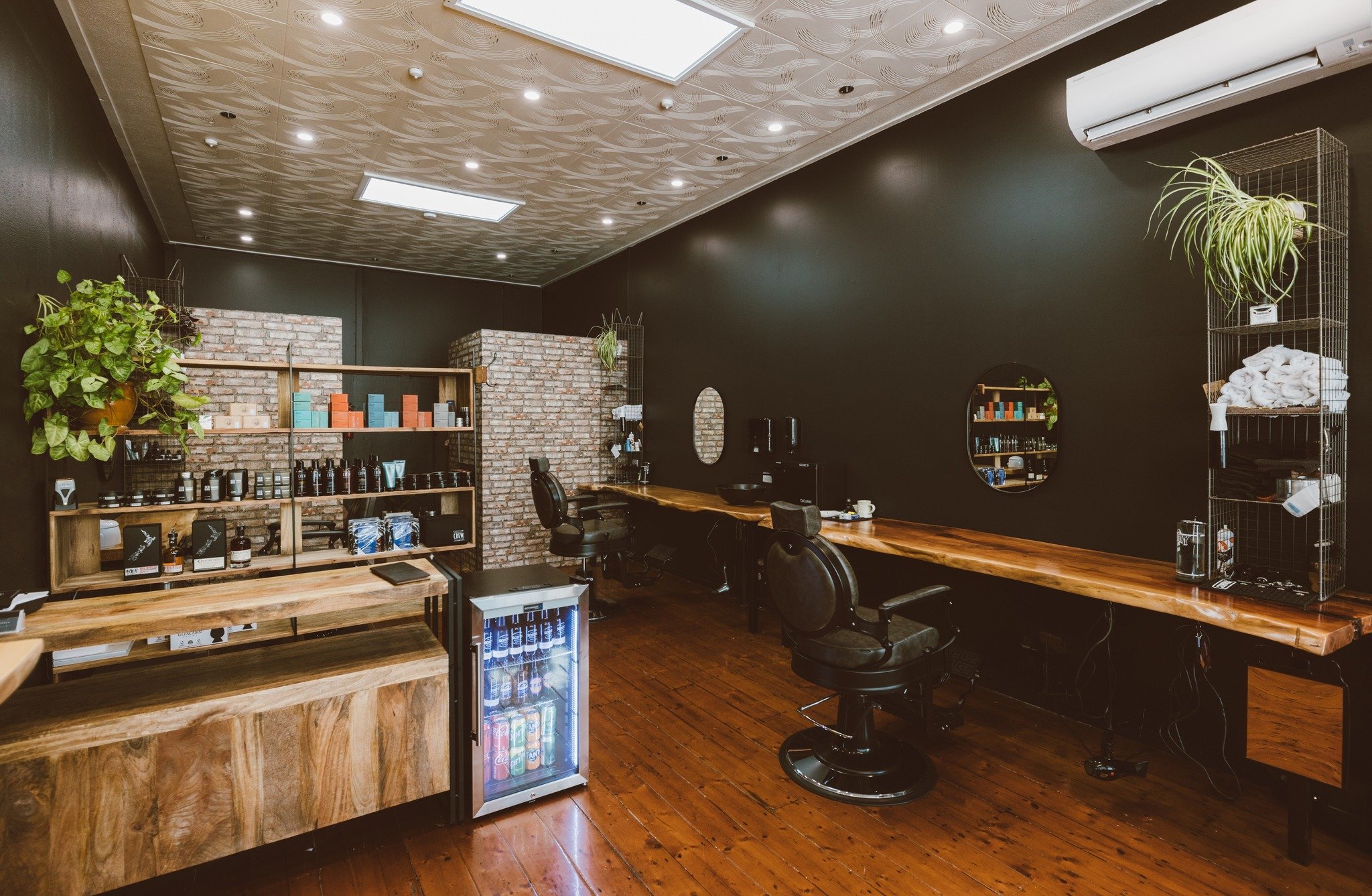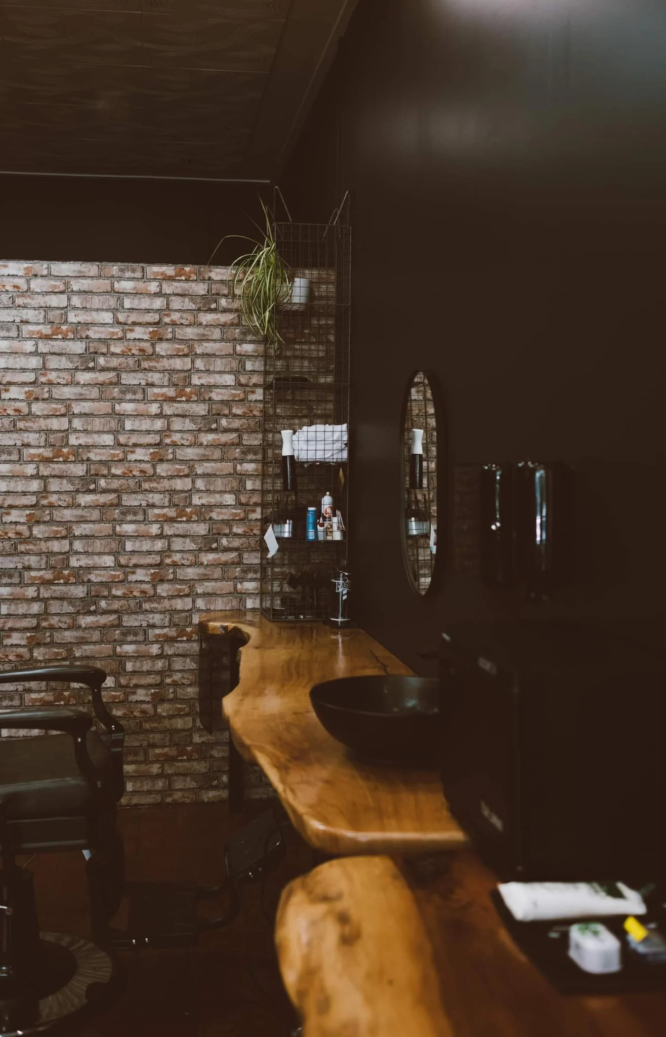 Tessa worked with Samara from Bruce's Barber to create this moody, masculine, warm and inviting space. Every detail has been thoughtfully considered in order to add to the inviting atmosphere you experience as you walk through the door.